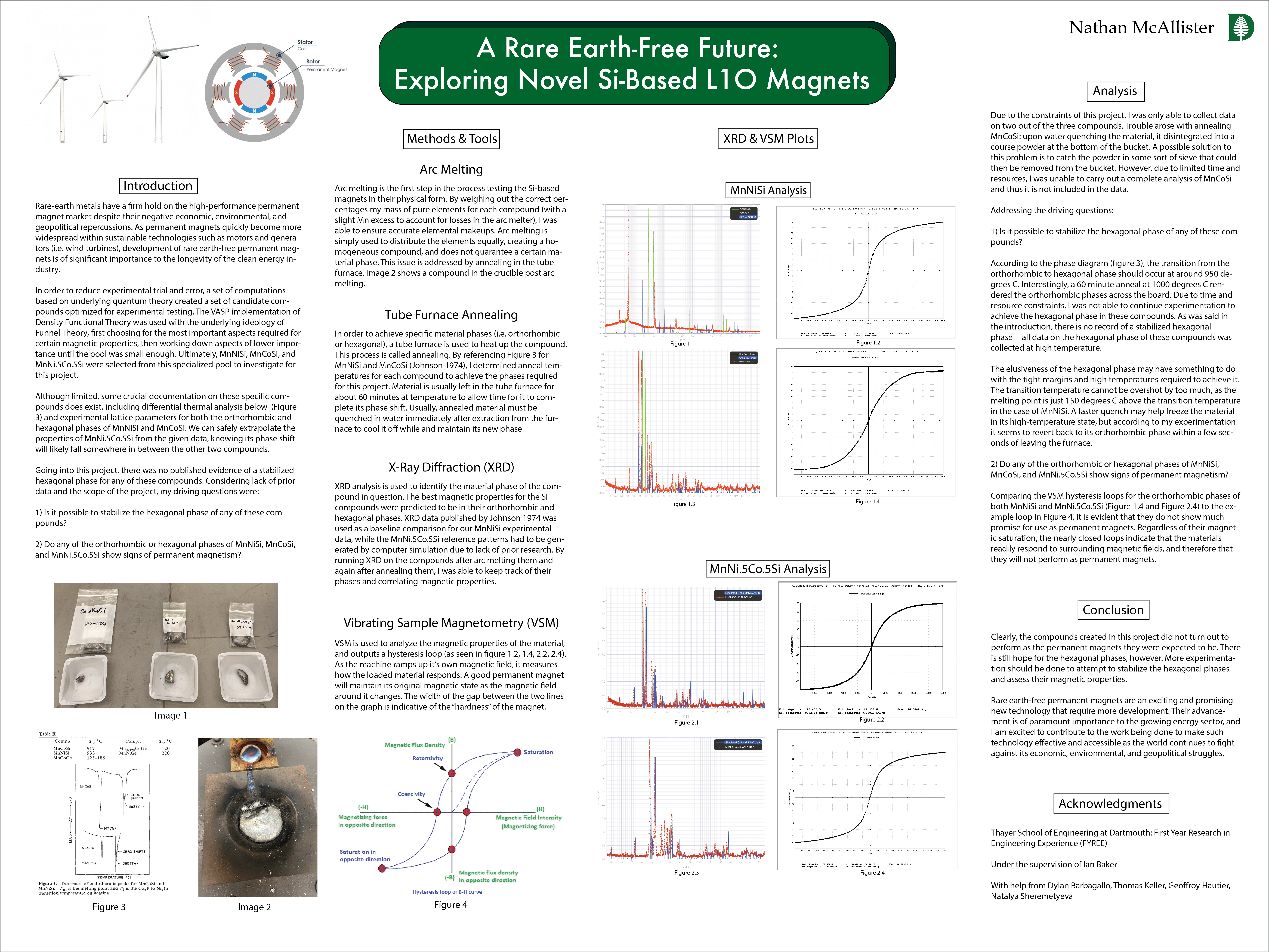 Working in Baker Lab at Thayer, I combined pure Manganese, Nickel, Cobalt, and Silicon in precise ratios and melted the mixture to achieve homogeneity.